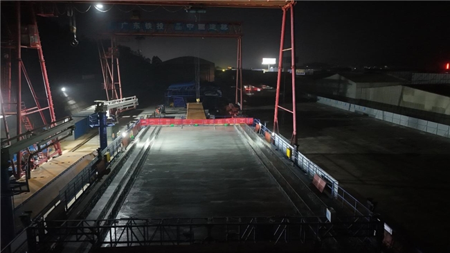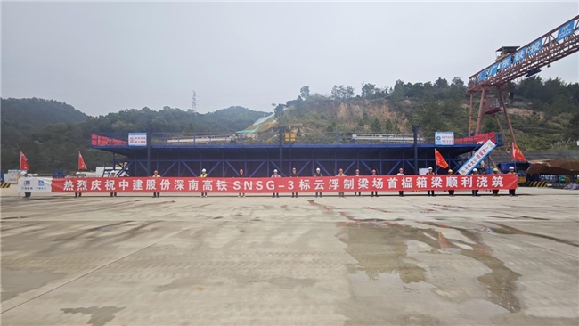 12月1日,中建股份深南高铁SNSG-3标云浮制梁场首榀预制箱梁顺利完成浇筑,标志着项目建设正式进入箱梁预制生产阶段,为后续架梁施工奠定了坚实基础。